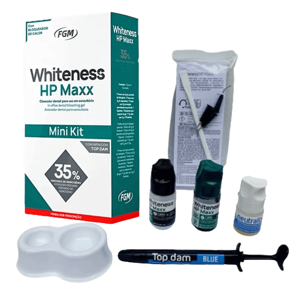 Clareador Whiteness HP Maxx 35% MiniKit com Top Dam FGM - Clareamento Dental Profissional